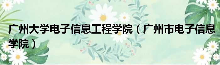 导读 大家好,今天小六子来为大家解答以下的问题,关于广州大学电子信息工程学院,广州市电子信息学院这个很多人还不知道,现在让我们一起来看看