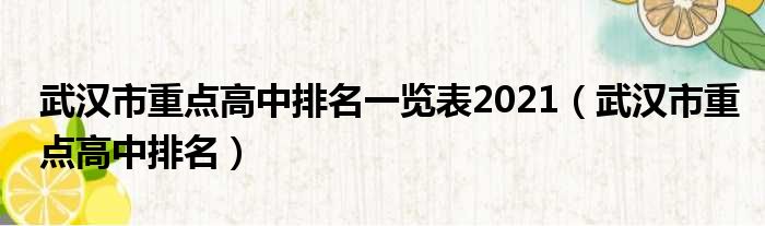 武汉市重点高中排名一览表2021(武汉市重点高中排名)