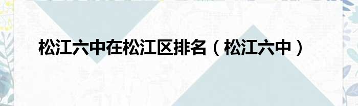 松江六中在松江区排名(松江六中)