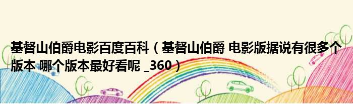 导读 大家好,今天小六子来为大家解答以下的问题,关于基督山伯爵电影百度百科,基督山伯爵 电影版据说有很多个版本 哪个版本最好看呢 _360这