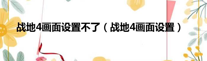 战地4画面设置不了,战地4画面设置很多人还不知道,乐儿来为大家解答以上问题,现在让我们一起来看看吧!