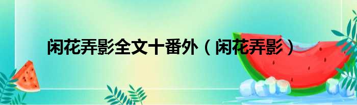 大家好,今天小六子来为大家解答以下的问题,关于闲花弄影全文十番外,闲花弄影这个很多人还不知道,现在让我们一起来看看吧!