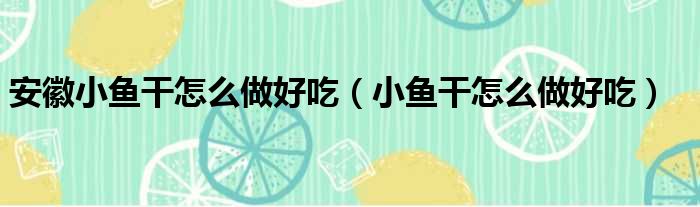 安徽小鱼干怎么做好吃(小鱼干怎么做好吃)