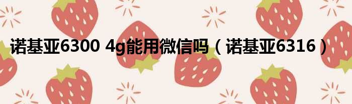 诺基亚6300 4g能用微信吗(诺基亚6316)