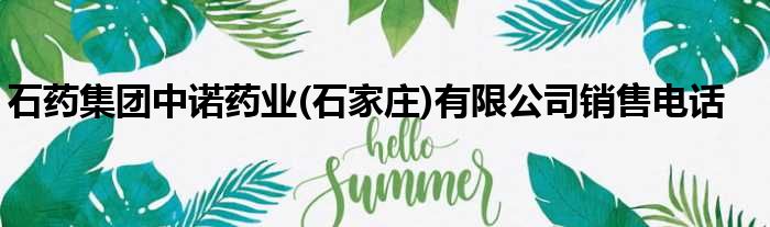 导读 大家好,今天小六子来为大家解答以下的问题,关于石药集团中诺药业(石家庄)有限公司销售电话这个很多人还不知道,现在让我们一起来看看吧!1