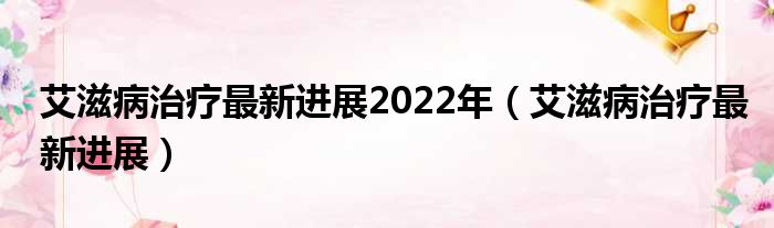 艾滋病治疗最新进展2022年(艾滋病治疗最新进展)