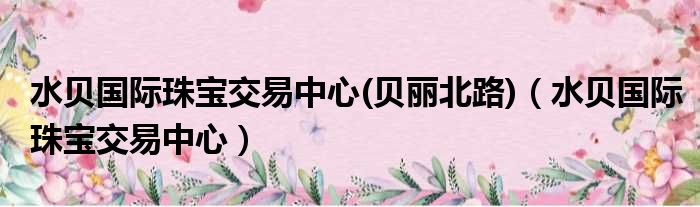 导读 大家好,今天小六子来为大家解答以下的问题,关于水贝国际珠宝交易中心(贝丽北路),水贝国际珠宝交易中心这个很多人还不知道,现在让我们一