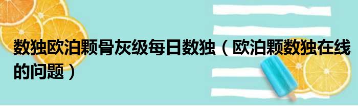 数独欧泊颗骨灰级每日数独(欧泊颗数独在线的问题)
