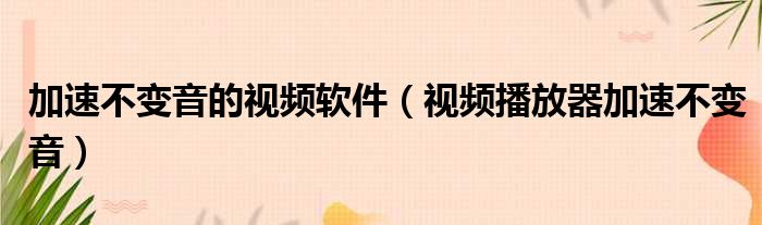 导读 大家好,今天小六子来为大家解答以下的问题,关于加速不变音的视频软件,视频播放器加速不变音这个很多人还不知道,现在让我们一起来看看吧