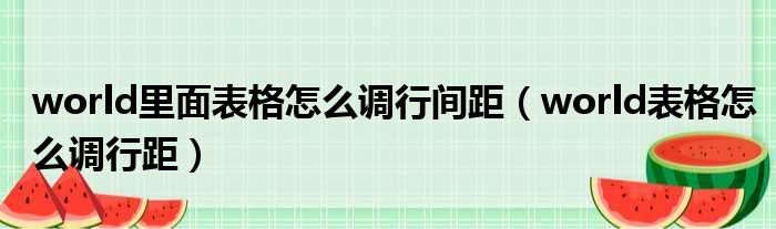 导读 大家好,今天小六子来为大家解答以下的问题,关于world里面表格怎么调行间距,world表格怎么调行距这个很多人还不知道,现在让我们一起来看