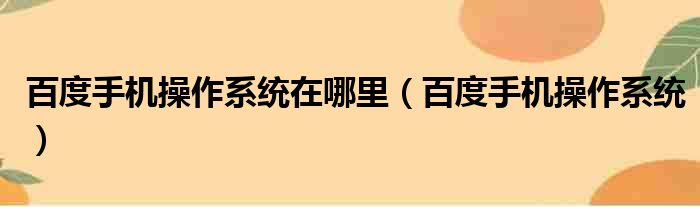 百度手机操作系统在哪里(百度手机操作系统)