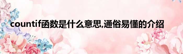 countif函数是什么意思,通俗易懂的介绍