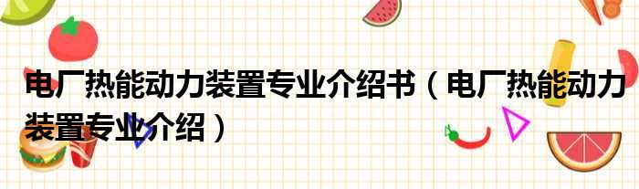 电厂热能动力装置专业介绍书(电厂热能动力装置专业介绍)