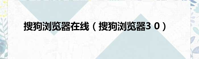 搜狗浏览器在线,搜狗浏览器3 0很多人还不知道,乐儿来为大家解答以上问题,现在让我们一起来看看吧!