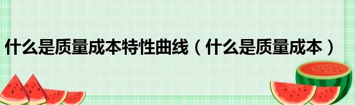 什么是质量成本特性曲线(什么是质量成本)