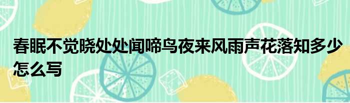 导读 大家好,今天小六子来为大家解答以下的问题,关于春眠不觉晓处处闻啼鸟夜来风雨声花落知多少怎么写这个很多人还不知道,现在让我们一起来看