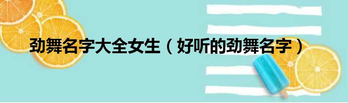 劲舞名字大全女生,好听的劲舞名字很多人还不知道,乐儿来为大家解答以上问题,现在让我们一起来看看吧!