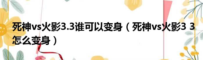 导读 大家好,今天小六子来为大家解答以下的问题,关于死神vs火影3 3谁可以变身,死神vs火影3 3怎么变身这个很多人还不知道,现在让我们一起来看