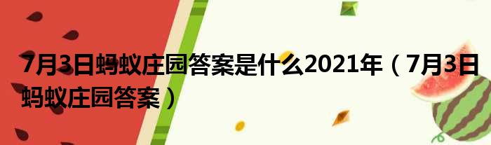 7月3日蚂蚁庄园答案是什么2021年(7月3日蚂蚁庄园答案)