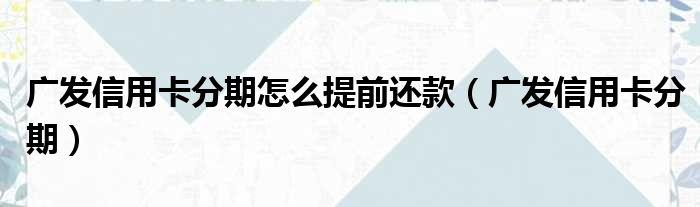 广发信用卡分期怎么提前还款(广发信用卡分期)