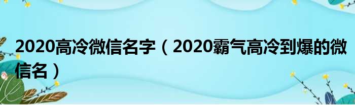 2020高冷微信名字(2020霸气高冷到爆的微信名)