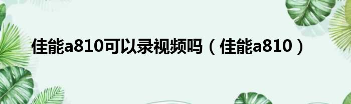 佳能a810可以录视频吗,佳能a810很多人还不知道,乐儿来为大家解答以上问题,现在让我们一起来看看吧!