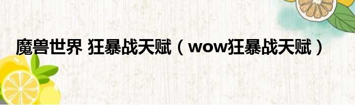 魔兽世界 狂暴战天赋(wow狂暴战天赋)