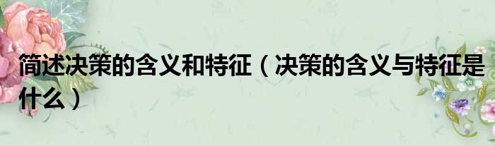 导读 大家好,今天小六子来为大家解答以下的问题,关于简述决策的含义和特征,决策的含义与特征是什么这个很多人还不知道,现在让我们一起来看看