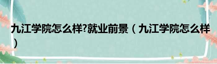 九江学院怎么样?就业前景(九江学院怎么样)