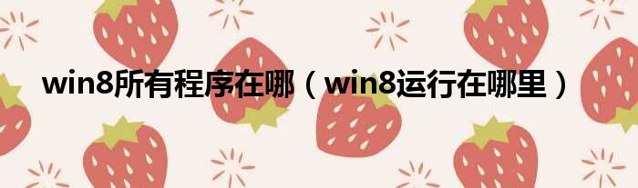 导读 win8所有程序在哪,win8运行在哪里很多人还不知道,乐儿来为大家解答以上问题,现在让我们一起来看看吧!如何找到Win8系统下的操作?Window