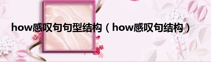 大家好,今天小六子来为大家解答以下的问题,关于how感叹句句型结构,how感叹句结构这个很多人还不知道,现在让我们一起来看看吧!