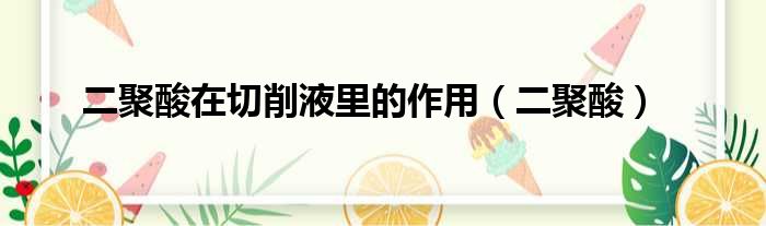 大家好,今天小六子来为大家解答以下的问题,关于二聚酸在切削液里的作用,二聚酸这个很多人还不知道,现在让我们一起来看看吧!