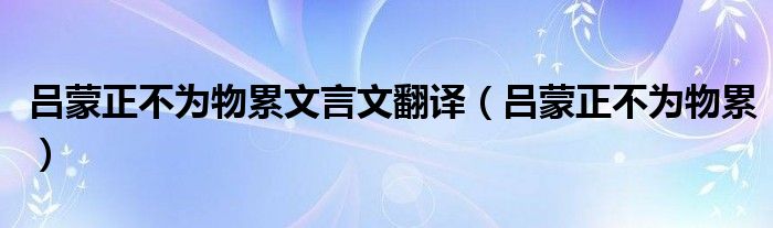 大家好,今天小六子来为大家解答以下的问题,关于吕蒙正不为物累文言文翻译,吕蒙正不为物累这个很多人还不知道,现在让我们一起来看看吧!