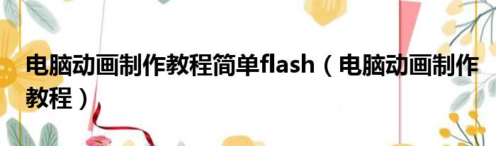 电脑动画制作教程简单flash(电脑动画制作教程)