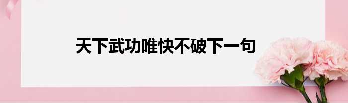 “天下武功,唯快不破”最早出于古龙著武侠小说小说《小李飞刀》,书中写到:小李飞刀,例无虚发,只出一刀,无人能挡,只因天下武功无坚不摧,唯快不破。意思是说天下的众多武功里,只有“快”找不到克制它的方法。当武功的速度达到极致的时候,有时候不需要复杂招式,只是简单的一招就可以克敌。古龙在代表作《多情剑客无情剑》描述到,“小李飞刀”,长三寸七分,刀是京城大冶的铁匠花了两个时辰打造出来的,可在“平湖”百晓生所品评的天下《兵器谱》中,“小李飞刀”排行第三,仅列在天机老人的“天机棒”和上官金虹的“子母龙凤环”后面。扩展资料这句话成名于周星驰电影《功夫》中,在电影里的火云邪神是以快,准,狠打遍天下。天下没有哪一种武功是不能被拆招的,即没有最强的武功,唯有速度快,对手根本来不及反应,先发制人,在对手还没有出招前,就将对手打败,对手何以拆招,所以唯快不破。当武功的速度达到极致的时候,有时候不需要复杂招式,只是简单的一招就可以克敌,具体例子,比如古龙的《多情剑客无情剑》里的阿飞,只有简简单单的一剑,却因为其速度达到了极致而跻身顶级高手行列。但是,张三丰的太极其实就是一种以慢制快的武功,此外,高手过招,有时更多是气势甚至是心理活动之间的对抗,气势弱了,心里乱了,自然便落了下乘,便无须比较招式。参考资料来源:百度百科--小李飞刀
