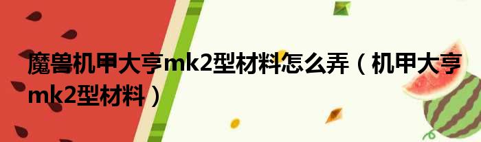导读 大家好,今天小六子来为大家解答以下的问题,关于魔兽机甲大亨mk2型材料怎么弄,机甲大亨mk2型材料这个很多人还不知道,现在让我们一起来看