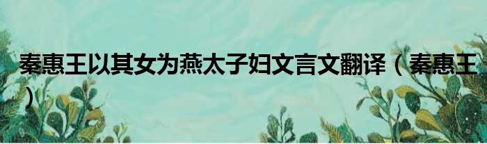 秦惠王以其女为燕太子妇文言文翻译(秦惠王)