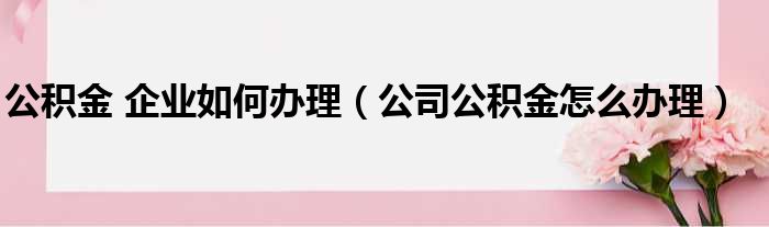 导读 大家好,今天小六子来为大家解答以下的问题,关于公积金 企业如何办理,公司公积金怎么办理这个很多人还不知道,现在让我们一起来看看吧!1