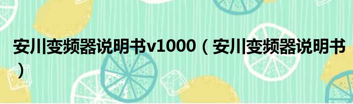 导读 大家好,今天小六子来为大家解答以下的问题,关于安川变频器说明书v1000,安川变频器说明书这个很多人还不知道,现在让我们一起来看看吧!1