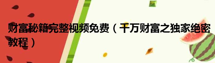 财富秘籍完整视频免费(千万财富之独家绝密教程)