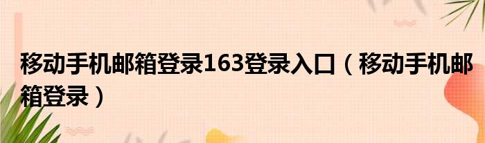 移动手机邮箱登录163登录入口(移动手机邮箱登录)