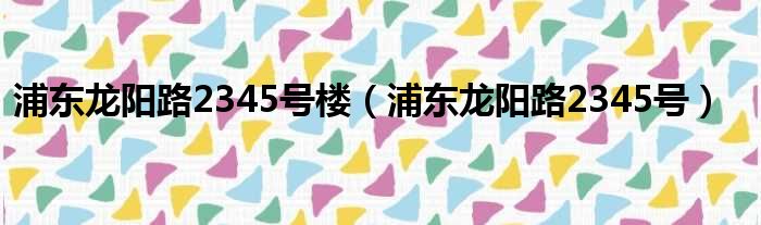 浦东龙阳路2345号楼(浦东龙阳路2345号)