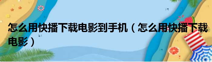 怎么用快播下载电影到手机(怎么用快播下载电影)