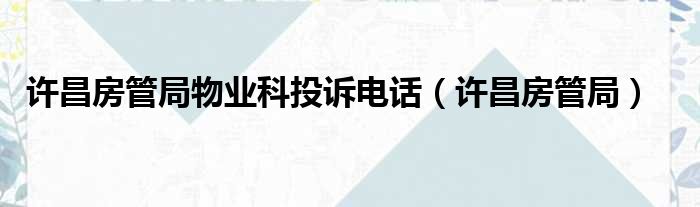 大家好,今天小六子来为大家解答以下的问题,关于许昌房管局物业科投诉电话,许昌房管局这个很多人还不知道,现在让我们一起来看看吧!