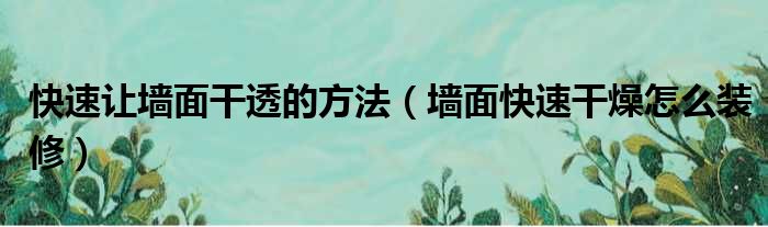 快速让墙面干透的方法(墙面快速干燥怎么装修)