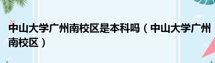 中山大学广州南校区是本科吗(中山大学广州南校区)