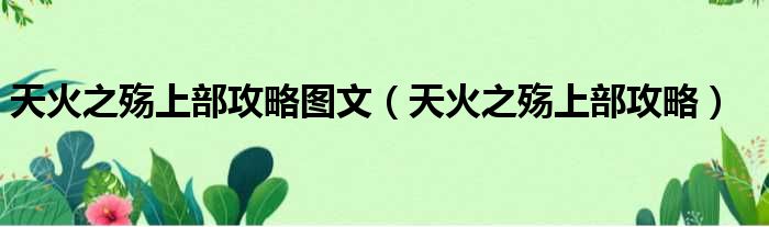 天火之殇上部攻略图文(天火之殇上部攻略)