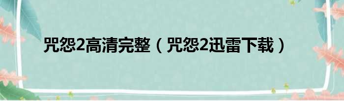 导读 大家好,今天小六子来为大家解答以下的问题,关于咒怨2高清完整,咒怨2迅雷下载这个很多人还不知道,现在让我们一起来看看吧!1、下载地址: