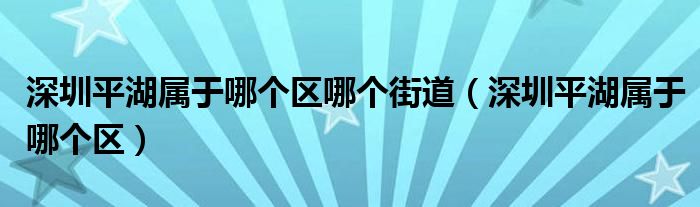 深圳平湖属于哪个区哪个街道(深圳平湖属于哪个区)