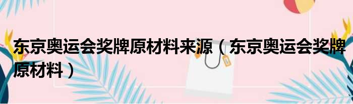 东京奥运会奖牌原材料来源(东京奥运会奖牌原材料)